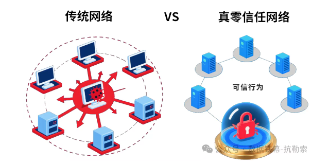 如果说AI解决了“提前发现”的问题,那么如何遏制已侵入网络系统的病毒蔓延,成为重中之重。在这里,我们看到bbin宝盈集团官网抗勒索技术的第二个优势:从“永不信任”的零信任1.0,进化到“基于可信”的真零信任2.0。